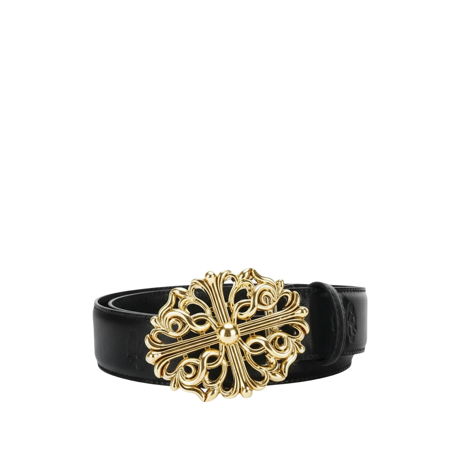 La Ceinture Buckle de Chrome Hearts allie audace et sophistication. Confectionnée en cuir haut de gamme, ses finitions argentées et son design emblématique en font un accessoire incontournable pour affirmer son style.
