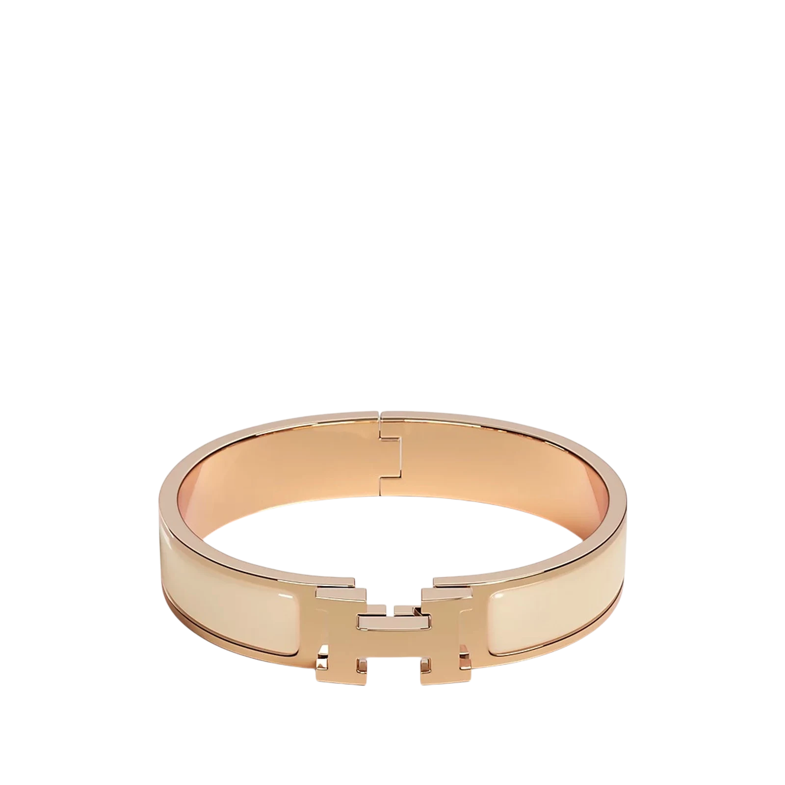 Le bracelet Clic h d’Hermès, véritable symbole d’élégance, marie cuir beige et métal doré. Un accessoire intemporel, parfait pour sublimer toutes vos tenues avec raffinement.