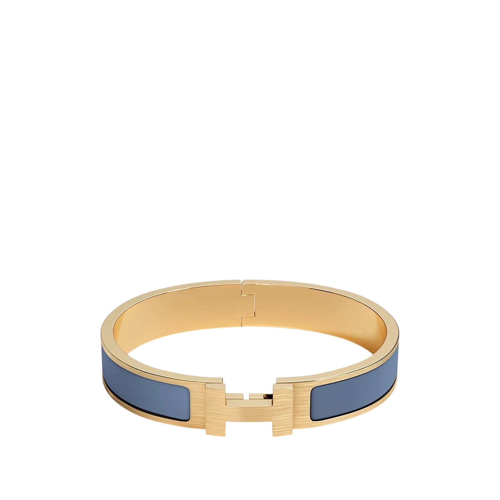 Le bracelet Clic h « Blue » d’Hermès, alliant élégance et audace. Fabriqué en cuir de veau, sa teinte vibrante évoque la mer. Un bijou incontournable pour affirmer son style avec sophistication.