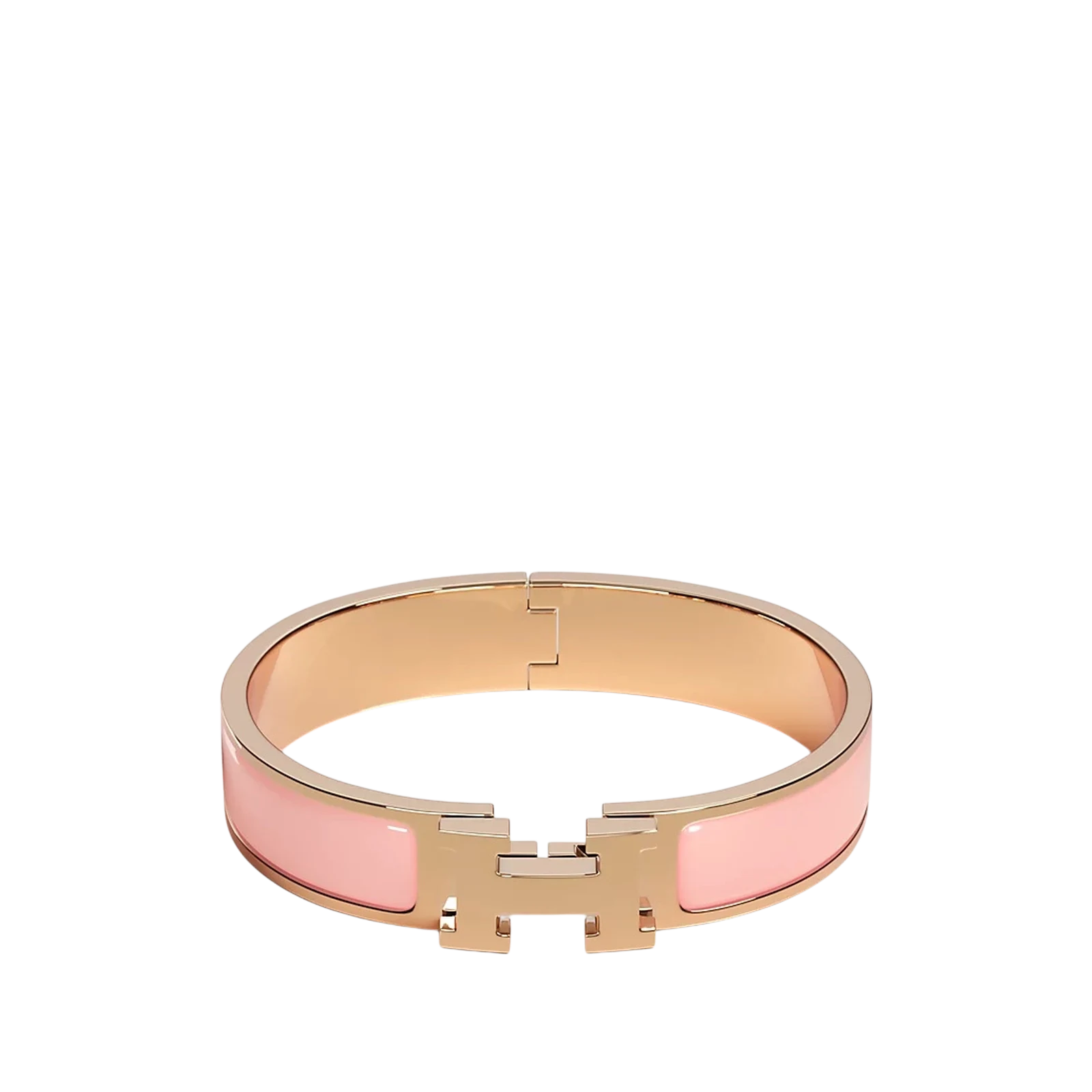 Le bracelet Clic h d’Hermès en Light Pink incarne l’élégance discrète. Son design épuré en résine et métal doré sublime tous les poignets, parfait pour un look chic et raffiné.