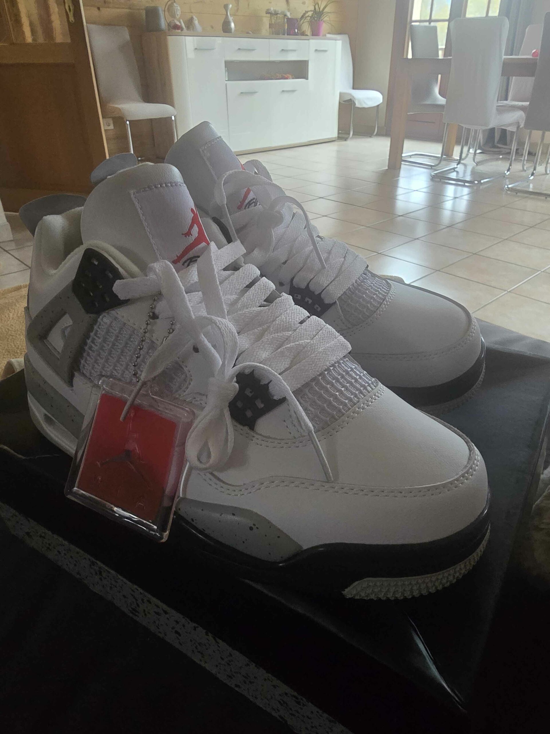 Commande reçue ce matin, commandé le 18, Jordan 4 White cement et veste off white, très content de la qualité, surtout la veste, très surpris