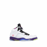 Lancée en 2023 pour célébrer l’héritage de l’émission ‘Le Prince de Bel-Air’, la Jordan 5 Retro « Alternate Bel-Air » arbore une empeigne en cuir nubuck et des accents colorés. Un clin d’œil à la culture pop, portée par des célébrités comme Jaden Smith.