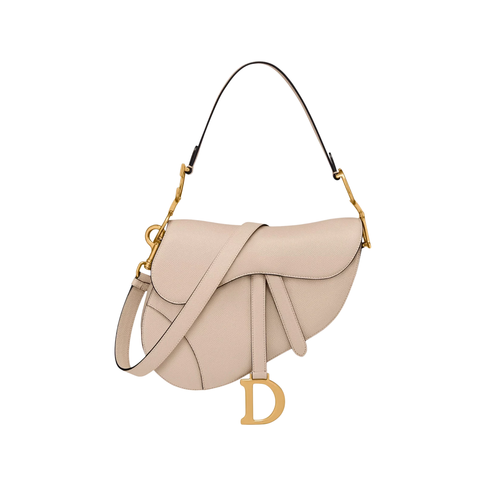 Le Sac Saddle à Bandoulière de Dior, emblématique grâce à sa silhouette audacieuse, allie cuir souple et finitions dorées. Un accessoire qui transcende le temps et sublime chaque tenue.