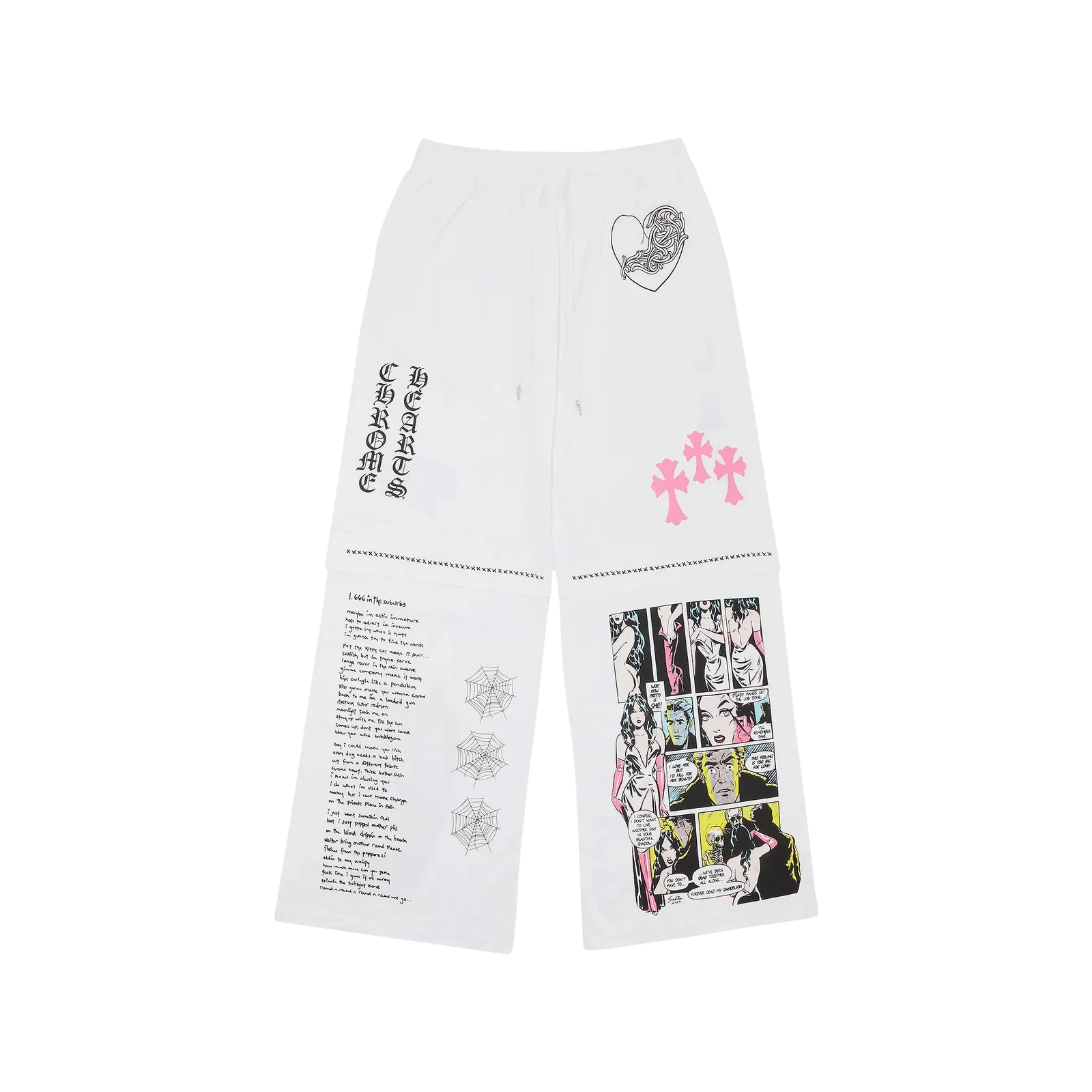 L’exclusivité Miami 2023 de Chrome Hearts et Deadly Doll réinvente le streetwear. Ces sweatpants blancs en coton premium, ornés de motifs audacieux, capturent l’esprit rebelle de la culture urbaine.