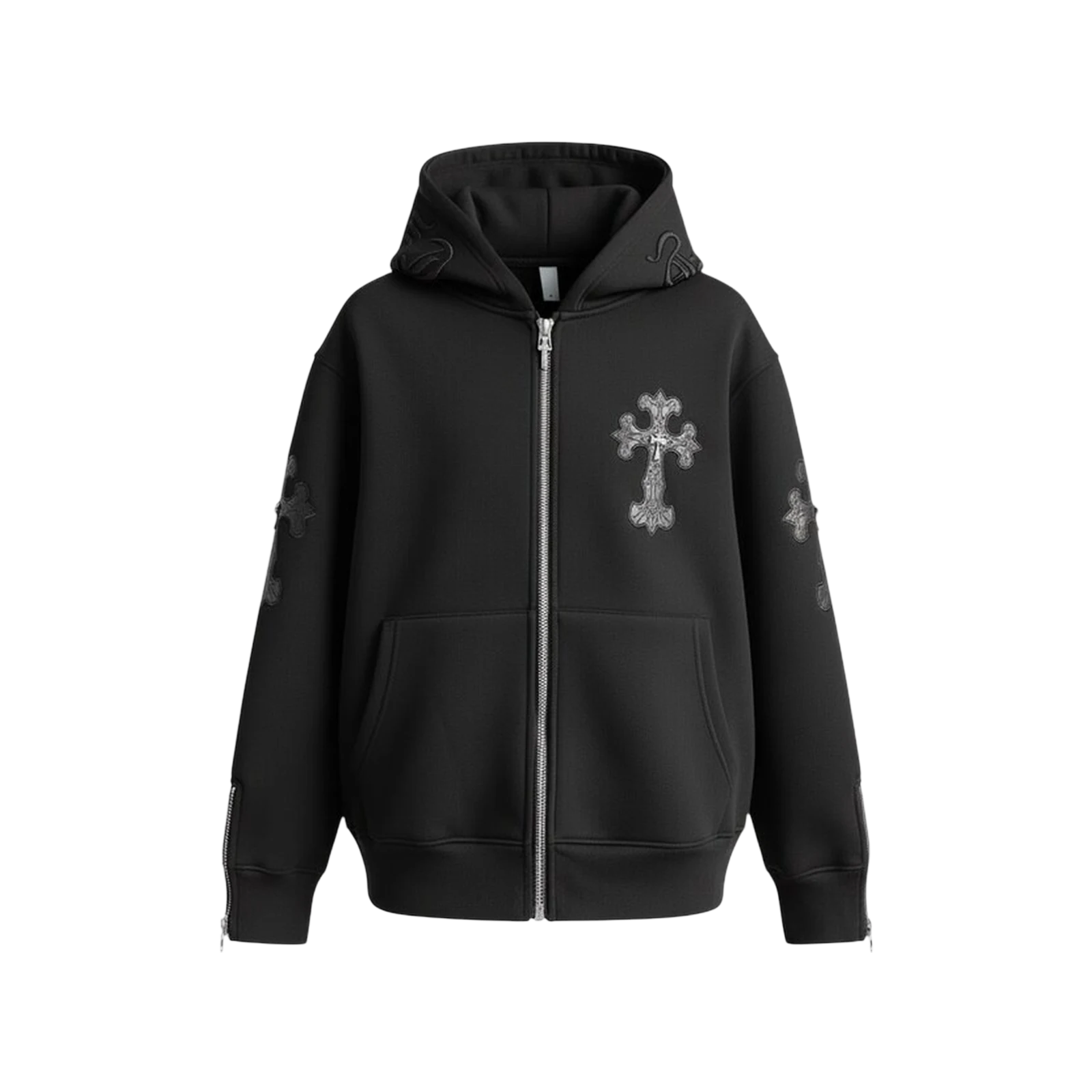 Le Cross Zip Hoodie de Chrome Hearts, alliant streetwear et luxe, arbore des détails iconiques en coton premium. Un incontournable pour les amateurs de mode à la recherche d’authenticité et de style.